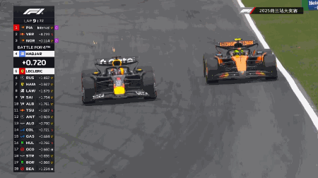 第9圈,轮胎磨损严重的维斯塔潘被身后的诺里斯在1号弯从外线超越。而在车阵后方,从15位起步的阿尔本已经上升多个位置,紧随第9的队友塞恩斯来到第10名。