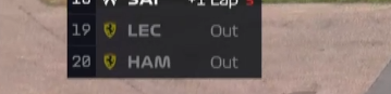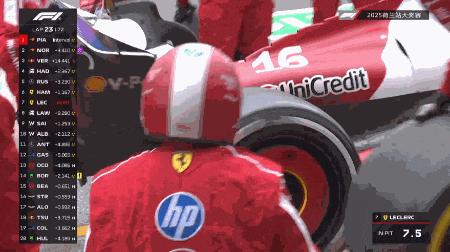 第20圈,角田、克拉平托和霍肯伯格进站换胎,他们在出站后掉至队尾。第23圈,法拉利主动求变,勒克莱尔进站换上白胎,仅耗时2秒!然而就在他出站后没多久,队友汉密尔顿便上墙退赛并引发黄旗......勒克莱尔血亏......