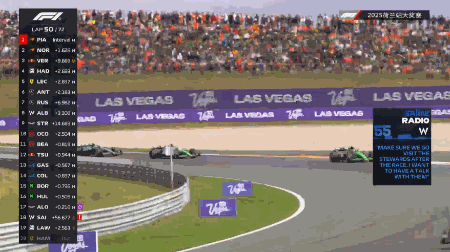 随后的比赛,领先的皮亚斯特里进入到了巡航模式,身后的诺里斯始终未能进入队友的DRS区。车阵后方,两辆没有进站的哈斯分列第10和第11名,由奥康领衔的“DRS高铁”让后方的赛车跑得越来越挣扎。